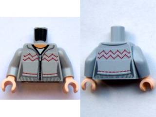 Torso Female Knit Fair Isle Sweater with Zigzag Stiching, Zipper, Light Nougat Neck Pattern / Light Bluish Gray Arms / Light Nougat Hands