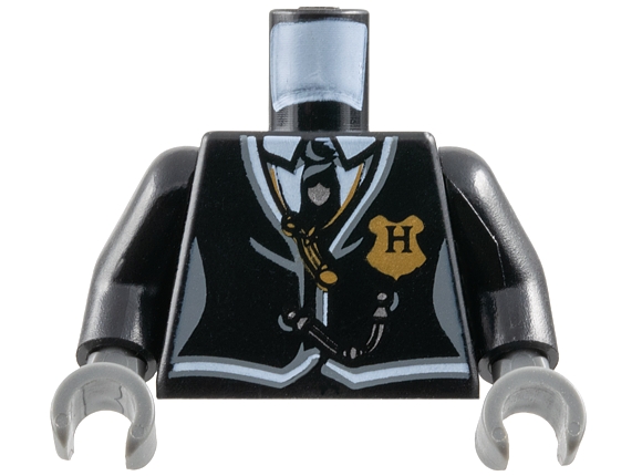 Torso Harry Potter Suit and Tie Women's with Hogwarts Shield Pattern / Black Arms / Dark Bluish Gray Hands