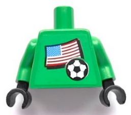 Torso Soccer US Goalie, US Flag Sticker Front, White Number Sticker Back Pattern (specify number in listing) / Green Arms / Black Hands
