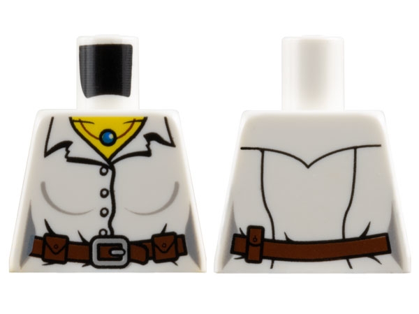 Torso Female Shirt with Collar and Buttons, Reddish Brown Belt with Pouches and Buckle, Necklace with Blue Bead, Yellow Neck Pattern