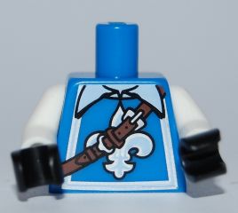 Torso Shirt with White and Silver Fleur-de-lis and Border over Undershirt with Collar, Reddish Brown Strap with Buckle Pattern / White Arms / Black Hands