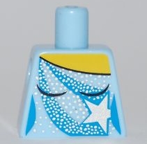 Torso Female Ice Skating Costume with Blue Stripes and Silver Star, Dots and Sparkles, Yellow Neck Pattern