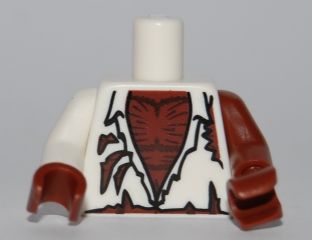 Torso Shirt Tattered with Werewolf Hairy Chest Pattern / Reddish Brown Arm Left / White Arm Right / Reddish Brown Hands