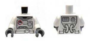 Torso City Spacesuit with Space Logo and Equipment Pattern Front, Tubes Pattern Back / White Arms / Dark Bluish Gray Hands