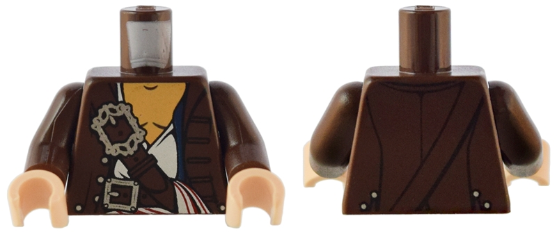 Torso PotC Jacket over White Open Shirt with Belts and White Sash Pattern / Dark Brown Arms / Light Nougat Hands