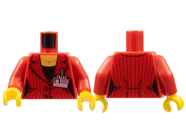 Torso Female Suit Jacket with Pinstripes and Buttons, Gold Necklace, Black Shirt, and Press Pass Badge Pattern / Red Arms / Yellow Hands