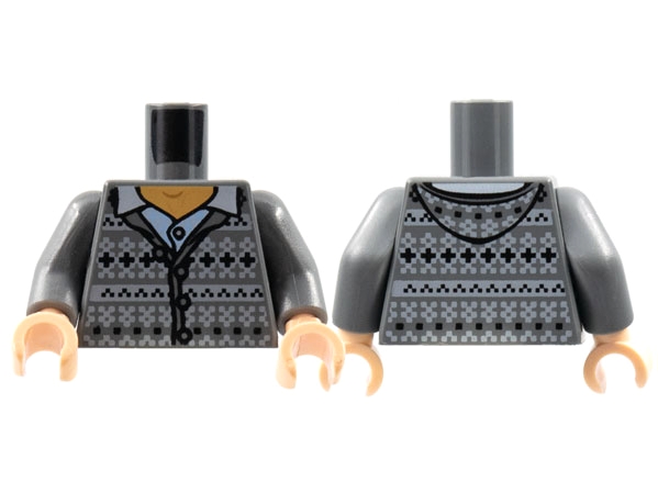 Torso Fair Isle Cardigan Sweater with Hood, Open Collar Pattern / Dark Bluish Gray Arms / Light Nougat Hands