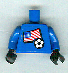 Torso Soccer Women's Team, United States of America (USA) Flag Sticker Front, White Number, Red Outlined Sticker Back Pattern (specify number in listing) / Blue Arms / Black Hands