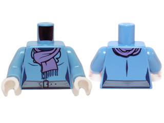 Torso Female Jacket, Medium Lavender Scarf with Dark Blue Fringe, Light Bluish Gray Belt with Black Buckle Pattern / Medium Blue Arms / White Hands