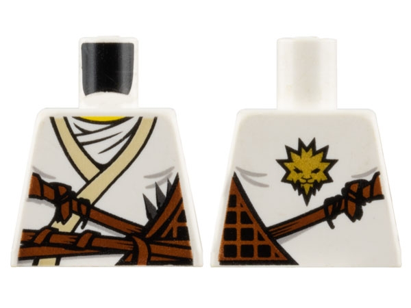 Torso Ninjago Brown Rope and White Undershirt, Gold Lion on Back Pattern