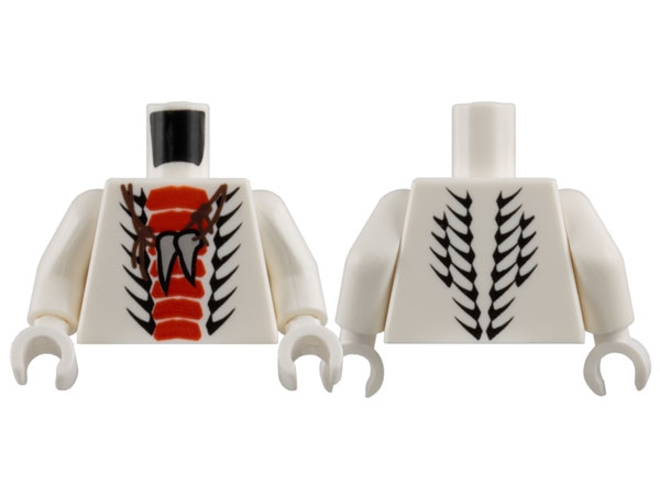 Torso Ninjago Snake with Red and Black Scales Thin, Light Bluish Gray Animal Tooth / Claw Necklace Pattern / White Arms / White Hands