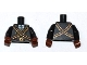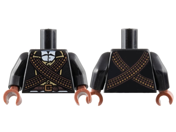 Torso Jacket Open with Dark Tan Trim over Vest with Buttons and White Shirt, Dark Brown Belt with Copper Buckle, Crossed Ammo Belts with Bullets Pattern / Black Arms / Reddish Brown Hands