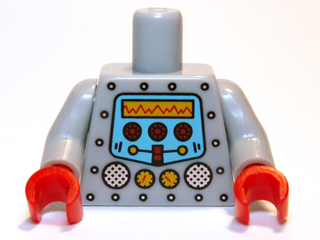 Torso Robot with Silver Rivets, Yellow Gauges, Red Knobs and Yellow Screen Pattern / Light Bluish Gray Arms / Red Hands
