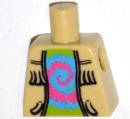 Torso Vest Open with Fringe over Lime Shirt with Dark Pink and Medium Blue Tie-Dyed Swirl Pattern
