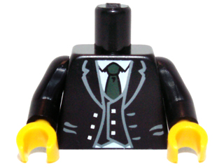 Torso Jacket and Vest with Buttons and White Shirt and Green Tie Pattern / Black Arms / Yellow Hands