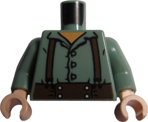 Torso LotR Button Shirt with Brown Suspenders Pattern (Frodo) / Sand Green Arms / Light Nougat Hands