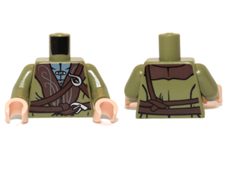 Torso LotR Cloak with Brown Collar and Straps Pattern (Legolas) / Olive Green Arms / Light Nougat Hands
