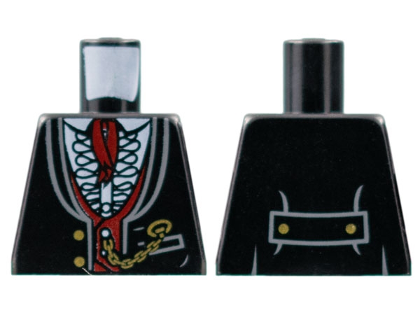 Torso Jacket Formal with White Shirt with Frills, Dark Red Vest and Cravat, Gold Watch Chain Pattern