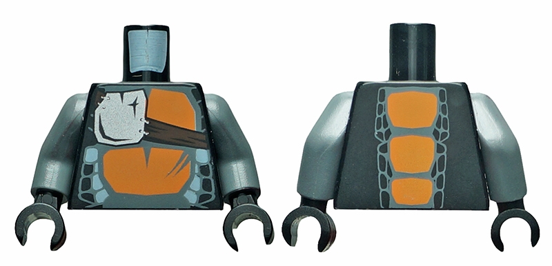 Torso Ninjago Snake with Silver Badge and Orange Scales Pattern (Skalidor) / Dark Bluish Gray Arms / Black Hands