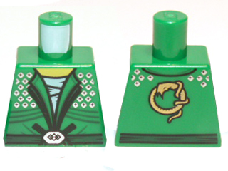 Torso Ninja Robe with Silver Diamonds and Dark Green Trim over White Layered Shirt, Sash Belt with Hexagon Buckle, Yellow Neck, Gold Snake on Back Pattern