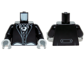 Torso Tailcoat and Vest Formal, White Shirt and Gray Bow Tie Pattern / Black Arms / Light Bluish Gray Hands