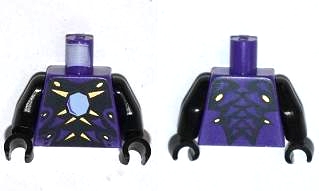 Torso Snake Armor with Scales, Gold Trim and Bright Light Blue Gem on Black Background Pattern / Black Arms / Black Hands