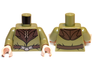 Torso LotR Elven Coat with Silver Clasp and Dark Brown Belt and Collar Pattern / Olive Green Arms / Light Nougat Hands