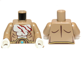 Torso Bare Chest with Muscles Outline, Dark Red Scars, Brown and Gold Belt with Dark Azure Round Jewel (Chi) Pattern / Dark Tan Arms / White Hands