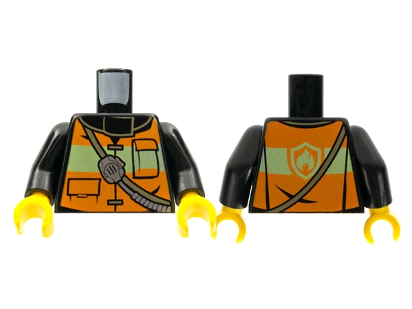 Torso Fire Reflective Stripe Vest with Pockets and Shoulder Strap with Radio and Fire Badge on Back Pattern / Black Arms / Yellow Hands