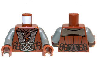 Torso LotR Vest with Silverwork, Large Double Belt and Buckle Pattern / Dark Bluish Gray Arms / Reddish Brown Hands
