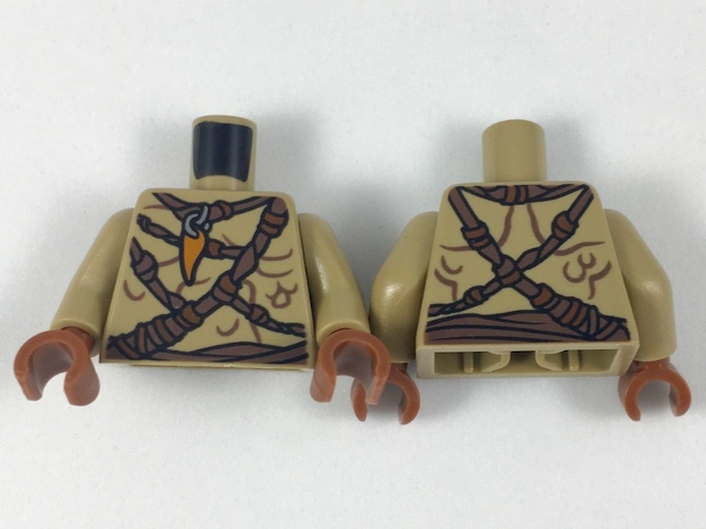 Torso Bare Chest with Body Lines, Ropes and Amulet Pattern / Dark Tan Arms / Reddish Brown Hands