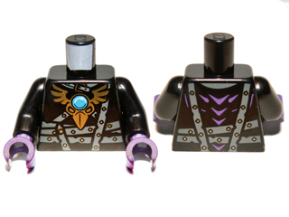 Torso Armor with Dark Bluish Gray Belts, Gold Raven Pendant and Dark Azure Round Jewel (Chi) Pattern / Black Arms / Dark Purple Hands