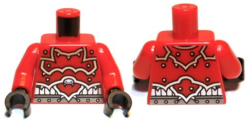 Torso Ninjago Red Armor and Silver Belt Pattern / Red Arms / Black Hands