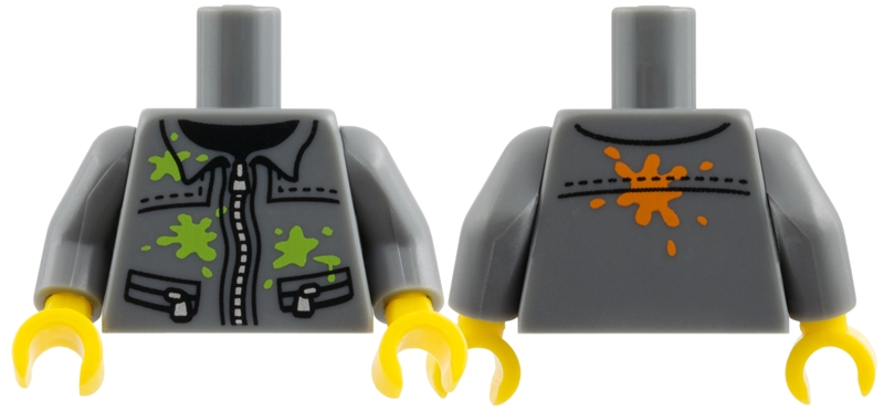 Torso Silver Zipper and Lime Paint Splotches Pattern / Dark Bluish Gray Arms / Yellow Hands