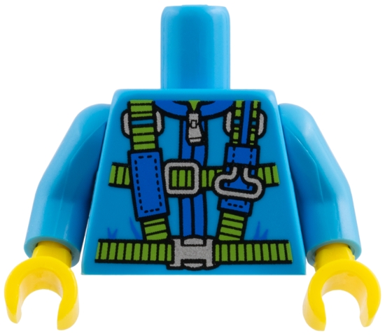 Torso Blue and Lime Parachute Harness Straps and Silver Buckles Pattern / Dark Azure Arms / Yellow Hands
