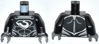 Torso Super Hero Costume with Muscles Outline, Zod Silver Chest Emblem, Oval Belt Buckle Pattern / Black Arms / Dark Bluish Gray Hands