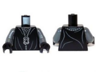Torso LotR Robe with Dark Bluish Gray Folds and Silver Chain, Pendant, and 2 Clasps Pattern / Dark Bluish Gray Arms / Black Hands