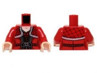 Torso Dress with Black Belt, Ruffles and Lace Shawl Pattern / Red Arms / Light Nougat Hands