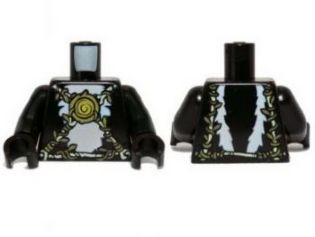 Torso White Skunk Fur with Olive Green and Yellowish Green Vines Belt and Medallion Pattern / Black Arms / Black Hands