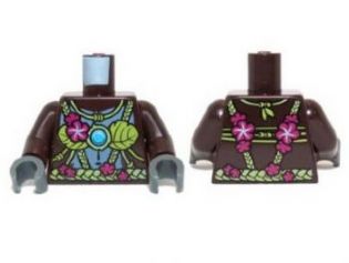 Torso Gorilla with Leaf Top and Belt, Pink Flowers and Blue Round Jewel (Chi) Pattern / Dark Brown Arms / Dark Bluish Gray Hands