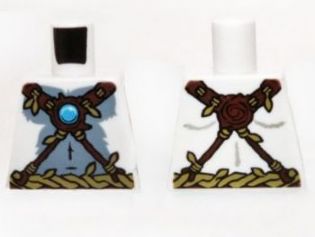 Torso Bare Gray Chest, Rope and Vine Belt and Necklace with Blue Round Jewel (Chi) Pattern