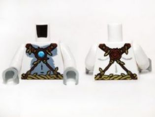 Torso Bare Gray Chest, Rope and Vine Belt and Necklace with Blue Round Jewel (Chi) Pattern / White Arms / Light Bluish Gray Hands