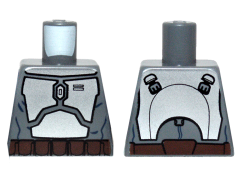 Torso SW Mandalorian Armor Plates Silver, Reddish Brown Belt with Pouches Pattern (Jango Fett)