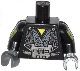 Torso Robot with Yellow Triangle and Cog Wheels Pattern / Black Evil Mech Arms / Dark Bluish Gray Hands