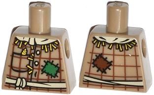 Torso Plaid Button Shirt with Straw, Wheat Spike in Pocket, Patches and Rope Belt Pattern