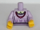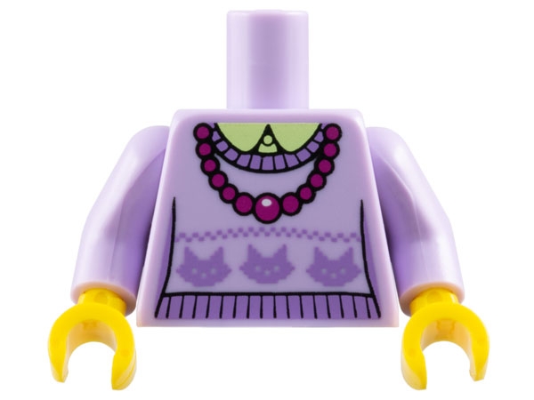 Torso Knit Sweater with Medium Lavender Cat Heads over Yellowish Green Shirt with Collar, Necklace with Magenta Beads Pattern / Lavender Arms / Yellow Hands