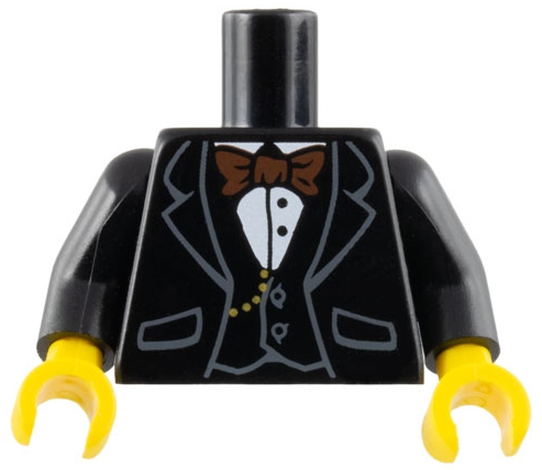 Torso Jacket Formal with Vest, White Shirt, and Reddish Brown Bow Tie Pattern / Black Arms / Yellow Hands