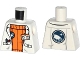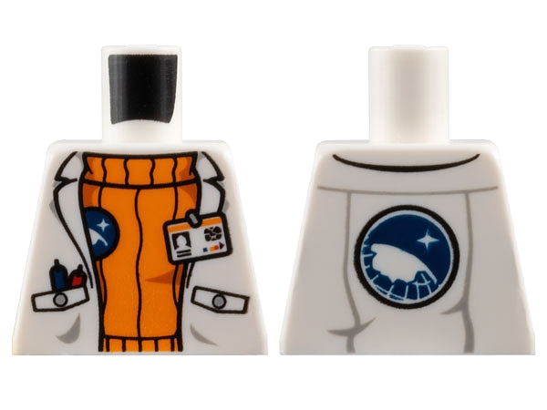 Torso Lab Coat with Pockets and ID Badge over Orange Sweater, Arctic Explorer Logo on Reverse Pattern