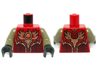 Torso Vest with Dark Red and Gold Armor with Scales and Orange Round Jewel (Fire Chi) Pattern / Olive Green Arms / Dark Green Hands