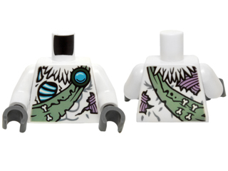 Torso Feathers, Bones, Sand Green Sash, Medium Lavender Sinew Patches and Dark Azure Round Jewel (Chi) Pattern / White Arms / Dark Bluish Gray Hands